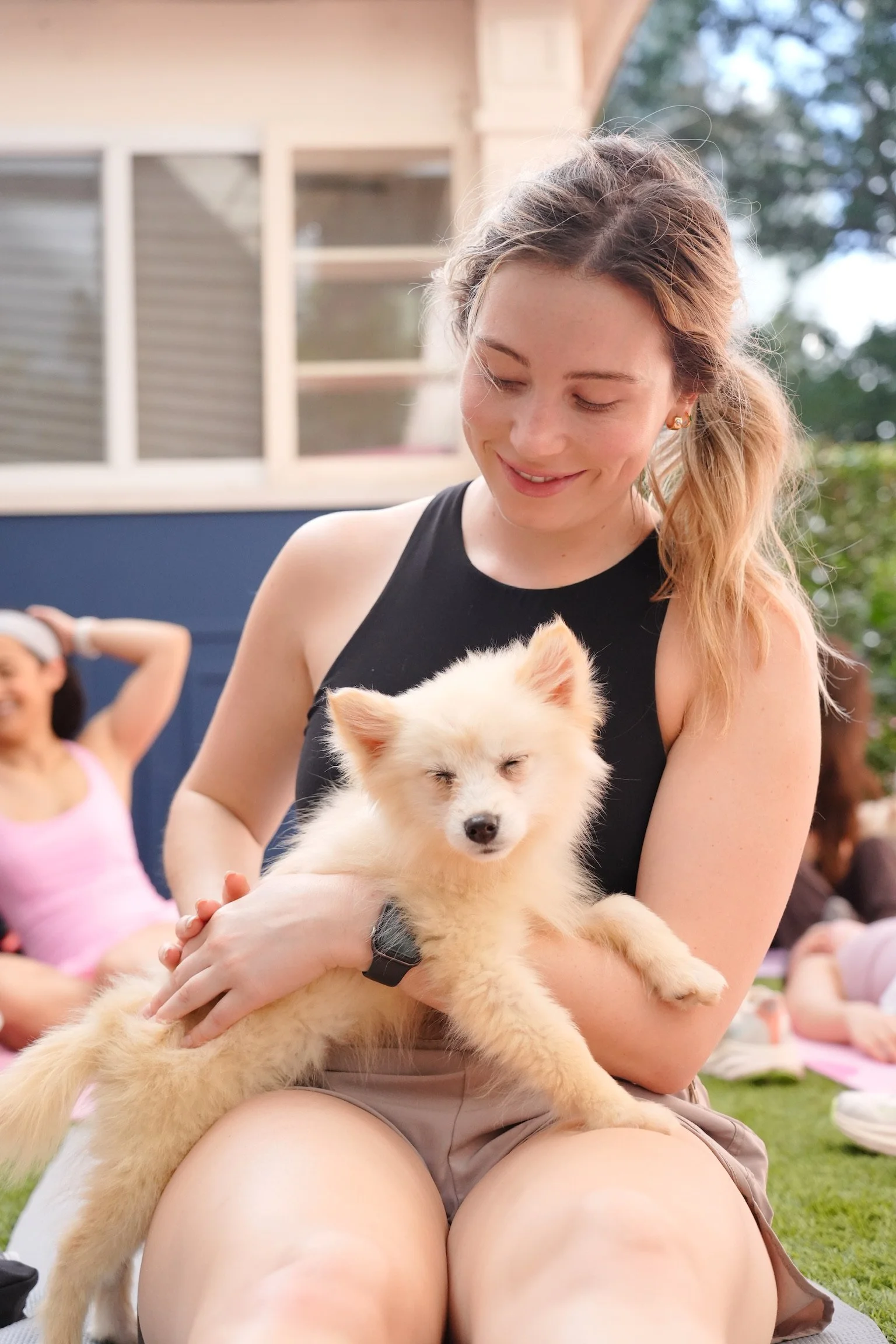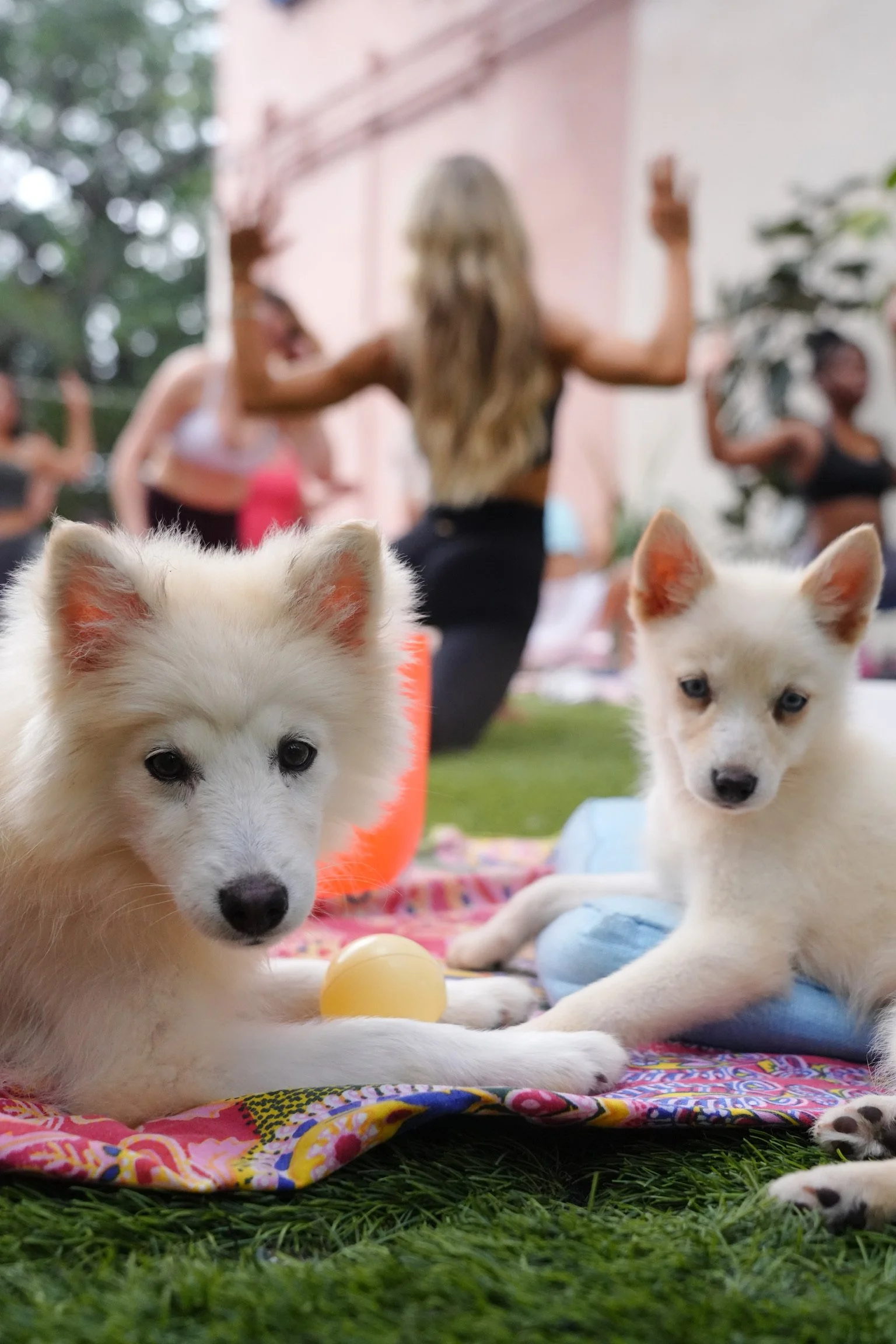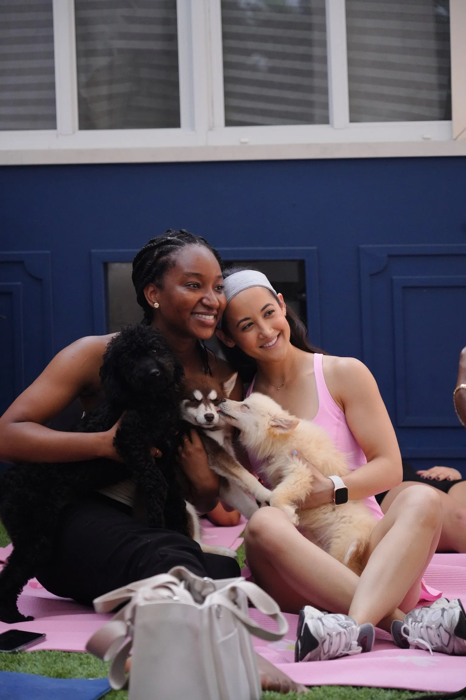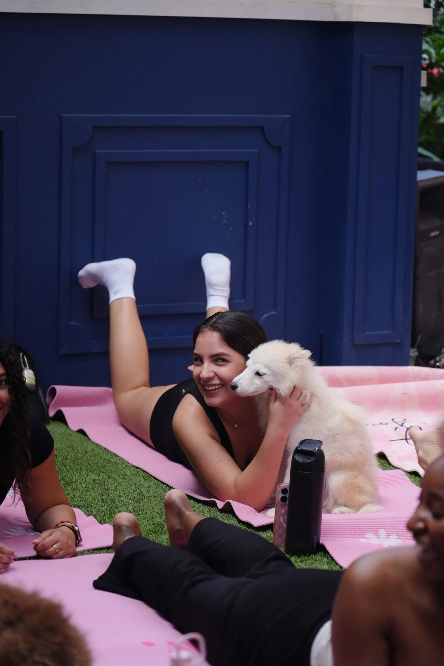 Captured photography and recap content for a puppy yoga wellness event, highlighting movement, connection, and playful moments between guests and pups.